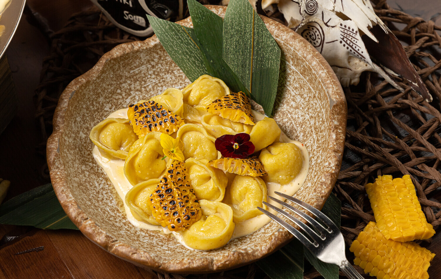 Яркие вареники из сладкого батата с кукурузой под пикантным сливочным соусом чили